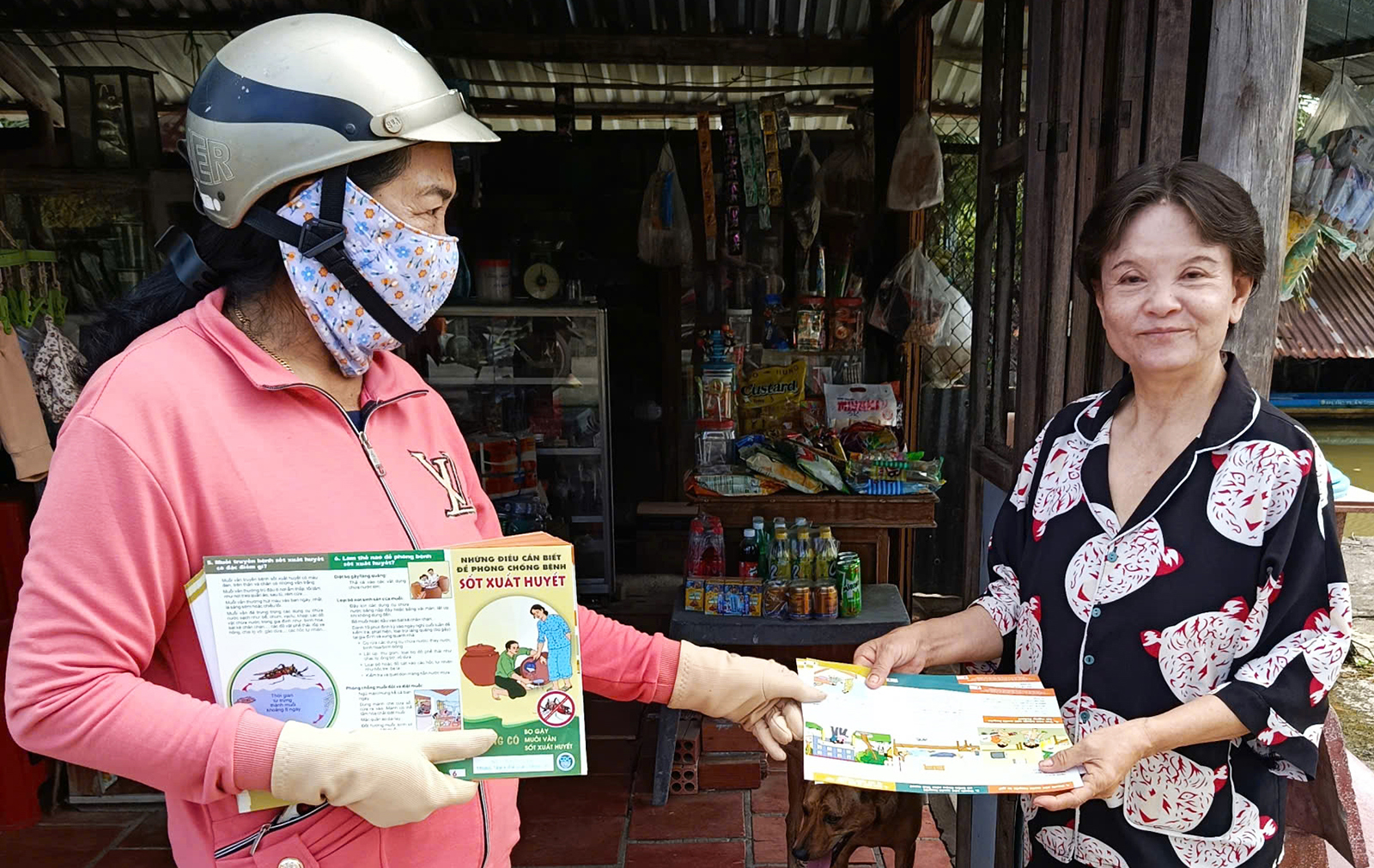 Phát tờ rơi tuyên truyền phòng, chống dịch bệnh sốt xuất huyết cho người dân.