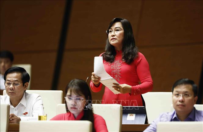 Đại biểu Quốc hội tỉnh Kiên Giang Nguyễn Thị Kim Bé phát biểu. Ảnh: An Đăng/TTXVN