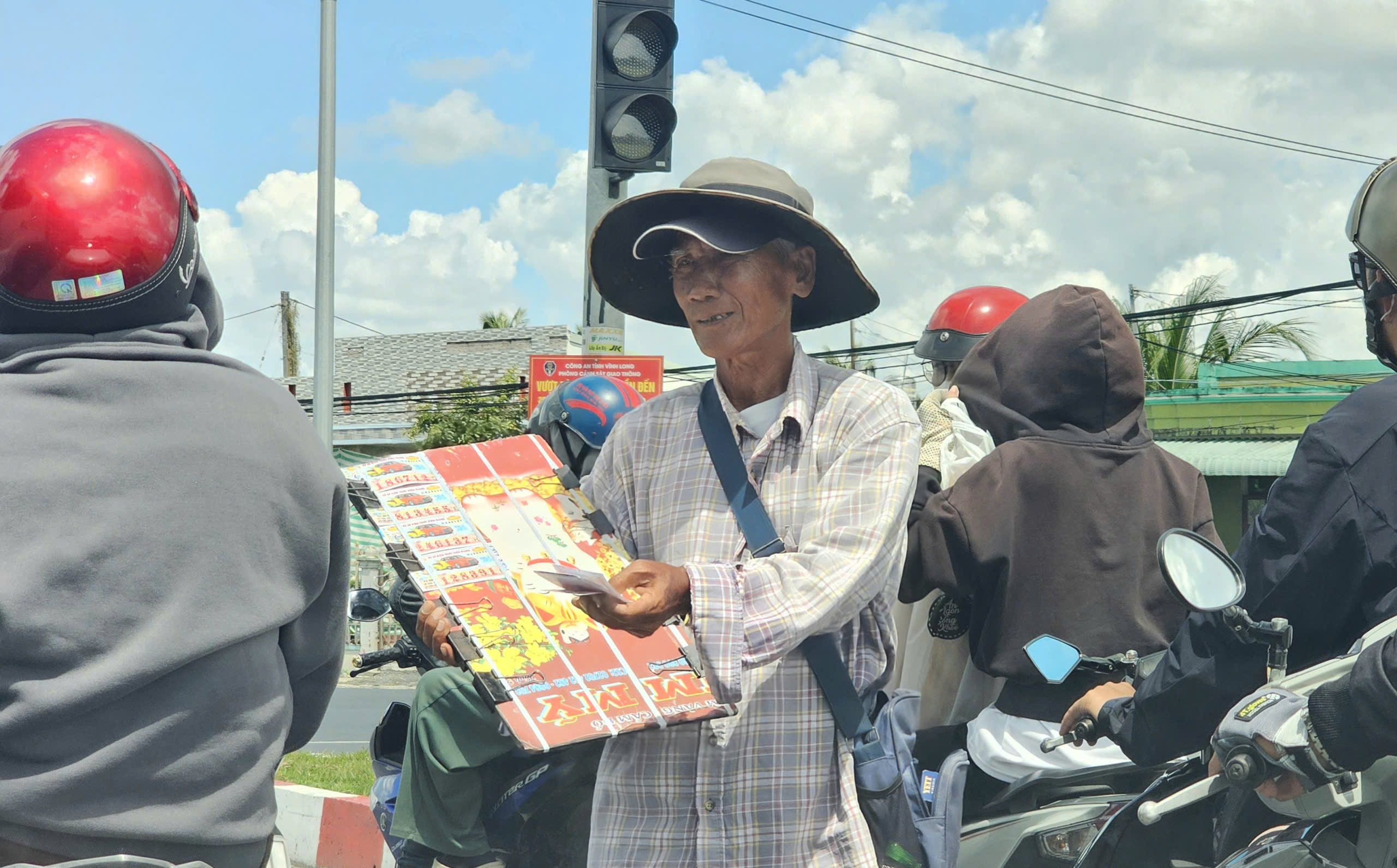 Bán vé số dạo tại tỉnh Vĩnh Long - Ảnh: CHÍ QUỐC