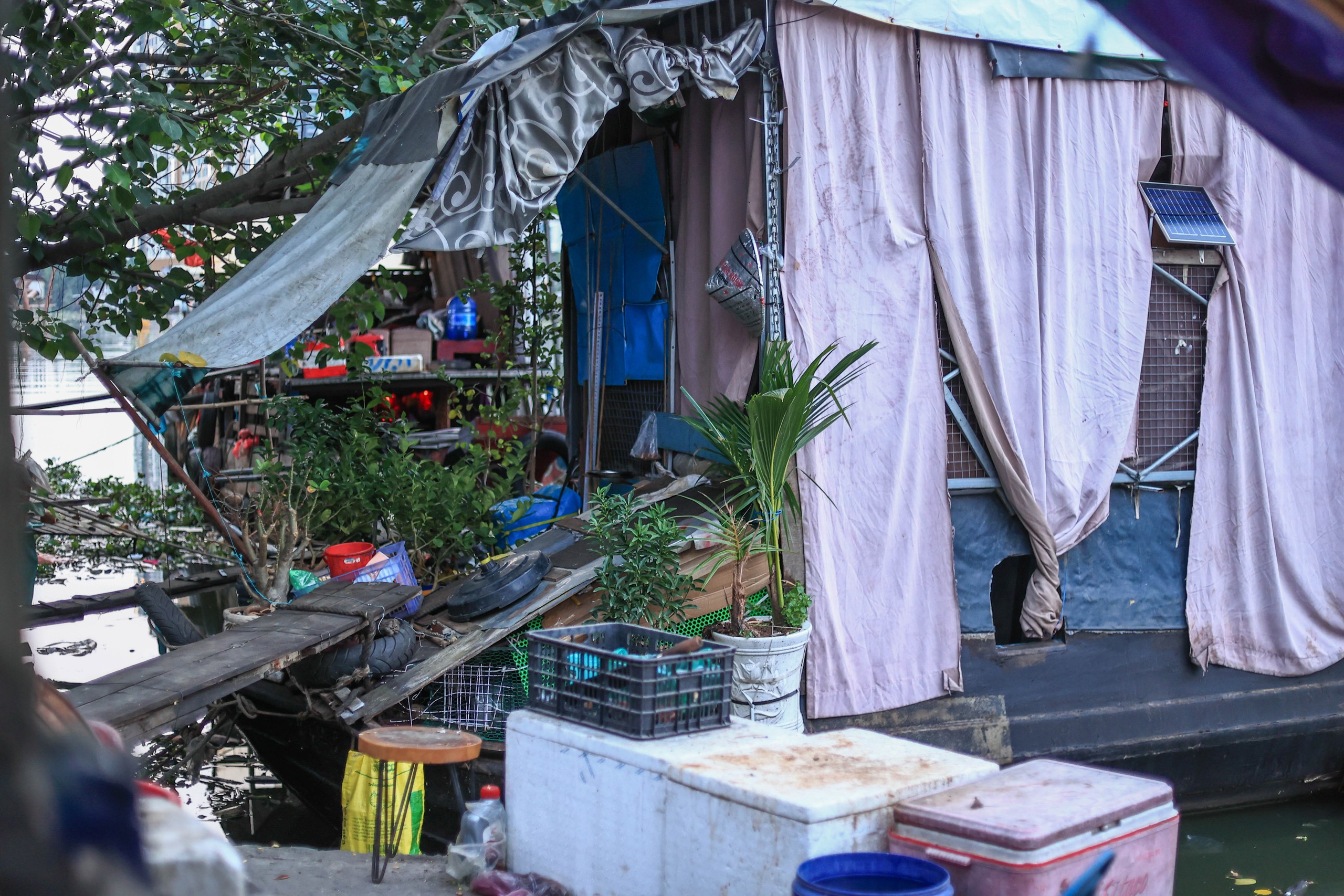 Bà Phượng kể mùa nắng ghe nóng hầm hập, ngột ngạt đến khó thở. Còn mùa mưa, triều cường dâng cao lại sợ tốc mái.