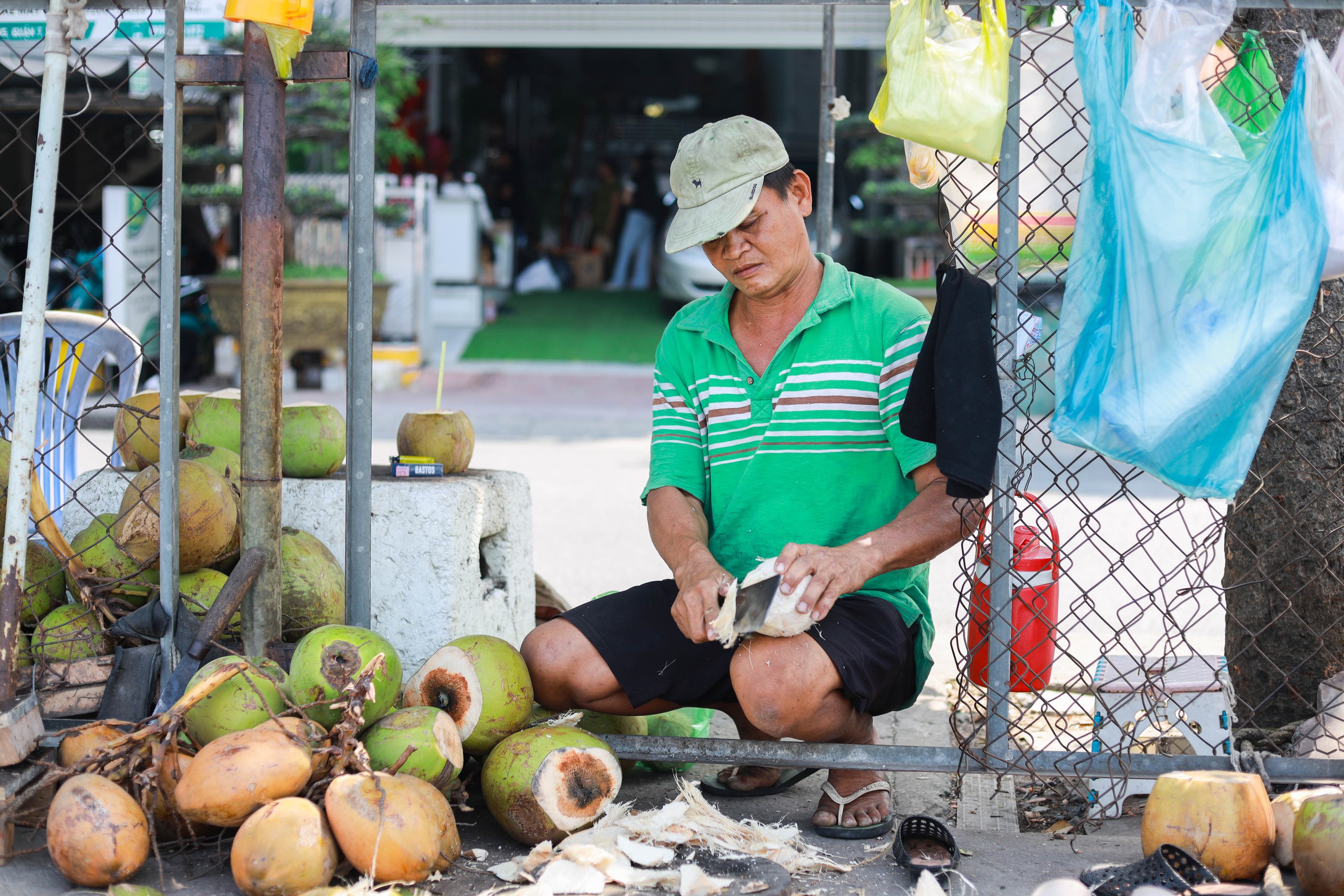 Ông Kiệt nói bán dừa ở đường Trần Xuân Soạn, dọc bờ Kênh Tẻ (quận 7 cũ). ẢNH: HÀ THƯƠNG