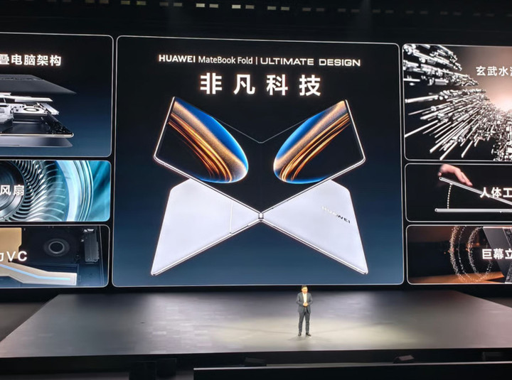 Ông Richard Yu Chengdong, Chủ tịch Nhóm Kinh doanh Tiêu dùng của Huawei, giới thiệu mẫu laptop màn hình gập chạy hệ điều hành HarmonyOS.